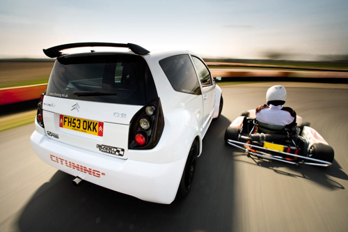這輛卡丁小型賽車總重90公斤,因此它比CiTuning C2要有著更佳的馬力重量比,但你要搞清楚:一台這樣的高級比賽型卡丁車要價可達5000英鎊,而你買一輛原廠2003年C2 1.4只要3500英鎊,然後你還可以拿剩下的1500英鎊去進行一些改裝。