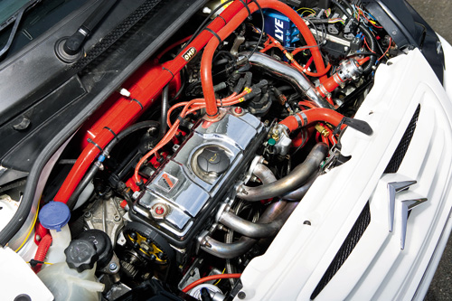 引擎型式 1360cc TU3基礎引擎,鋼製汽缸床,修改汽缸頭,9:5:1壓縮比,修改燃燒室,渦輪增壓對應凸輪軸,Vernier普利,輕量化平衡底座,分隔式油壺,鋁合金進氣高壓管含60mm阻風門本體,Magnetti Marelli管理系統(串聯原廠電腦、以維持原廠功能),GranFab 不鏽鋼手工打造歧管(等長頭段)Turbo Dynamics GT17混合式渦輪增壓器,升級線圈,手工訂製不鏽鋼排氣系統,競賽型離合器,競賽型引擎配置,A組賽車廢氣閥,手工訂製中間冷卻器,Aeroquip蛇管,Green空氣濾芯,機油冷卻器,遠距機油濾芯,競賽型鋁合金散熱器。