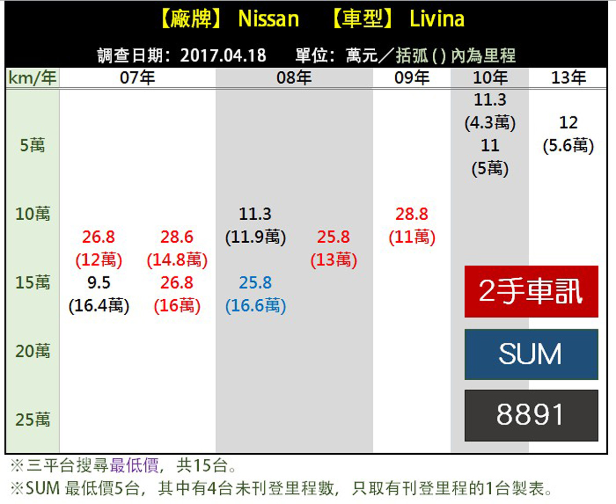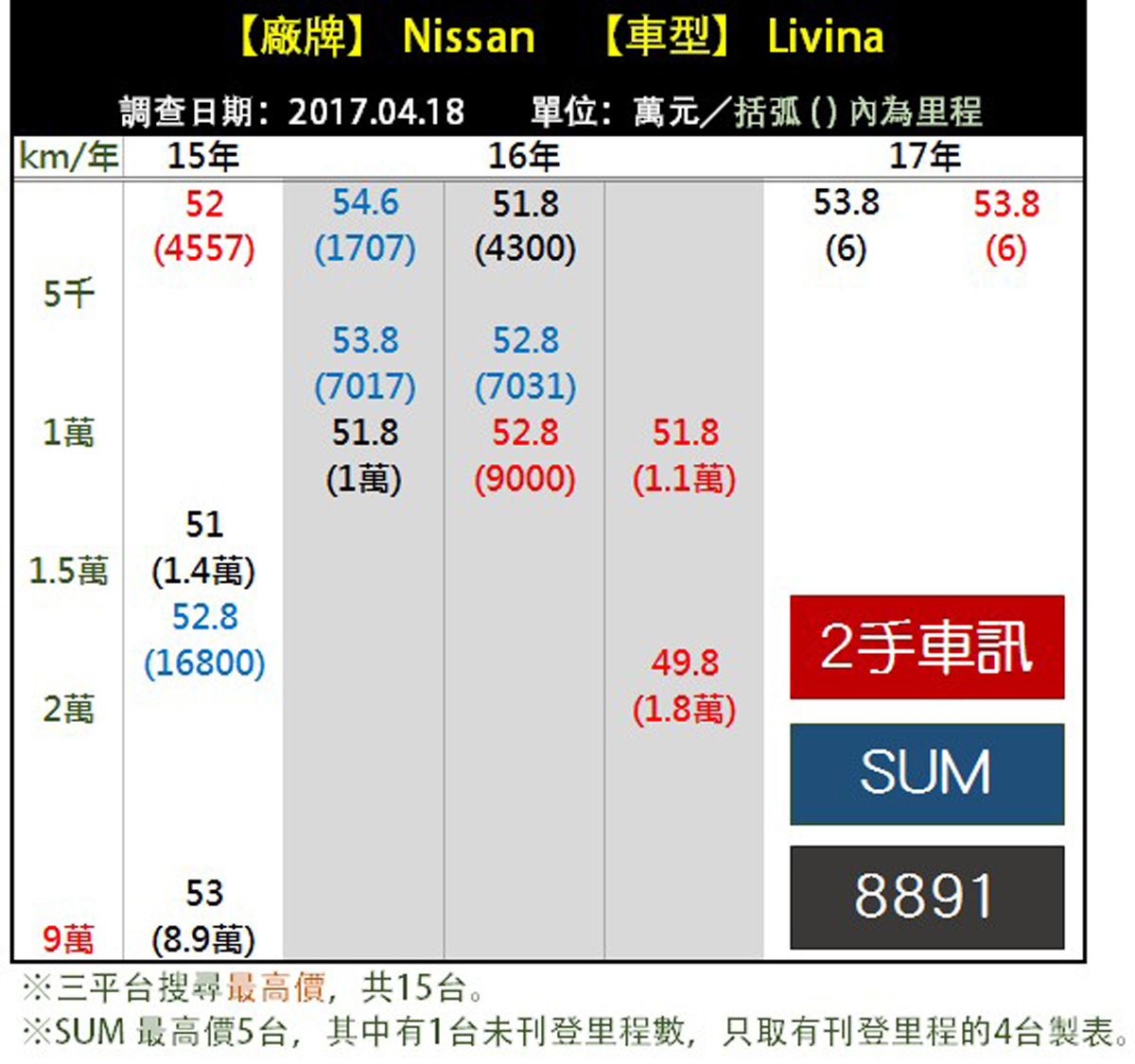 2017年4月18日 中古車行情週報: Nissan Livina 篇