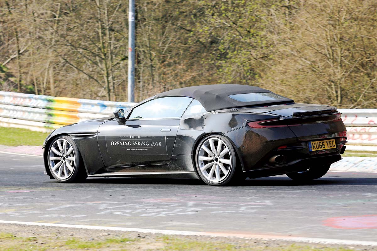 在紐柏林測試的DB11 Volante車身後段還是披著偽裝,然而這也是敞篷版本跟雙門版本差異最大的部分,真正想一窺全貌還是得等到正式發表之後。DB11其實稱不上是輕盈的車款,再加上敞篷結構車身重量可能會逼近1800公斤,但還好車上的5.2升雙渦輪增壓V12引擎擁有600hp以上的動力輸出,讓它能在3.9秒完成0~100km/h加速,再加上一些來自M.Benz技術,這部車在性能方面應該相當值得期待;如果這還不夠的話,就只好等未來的Vanquish Volante了。