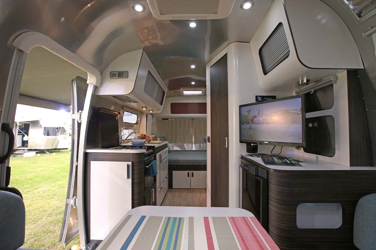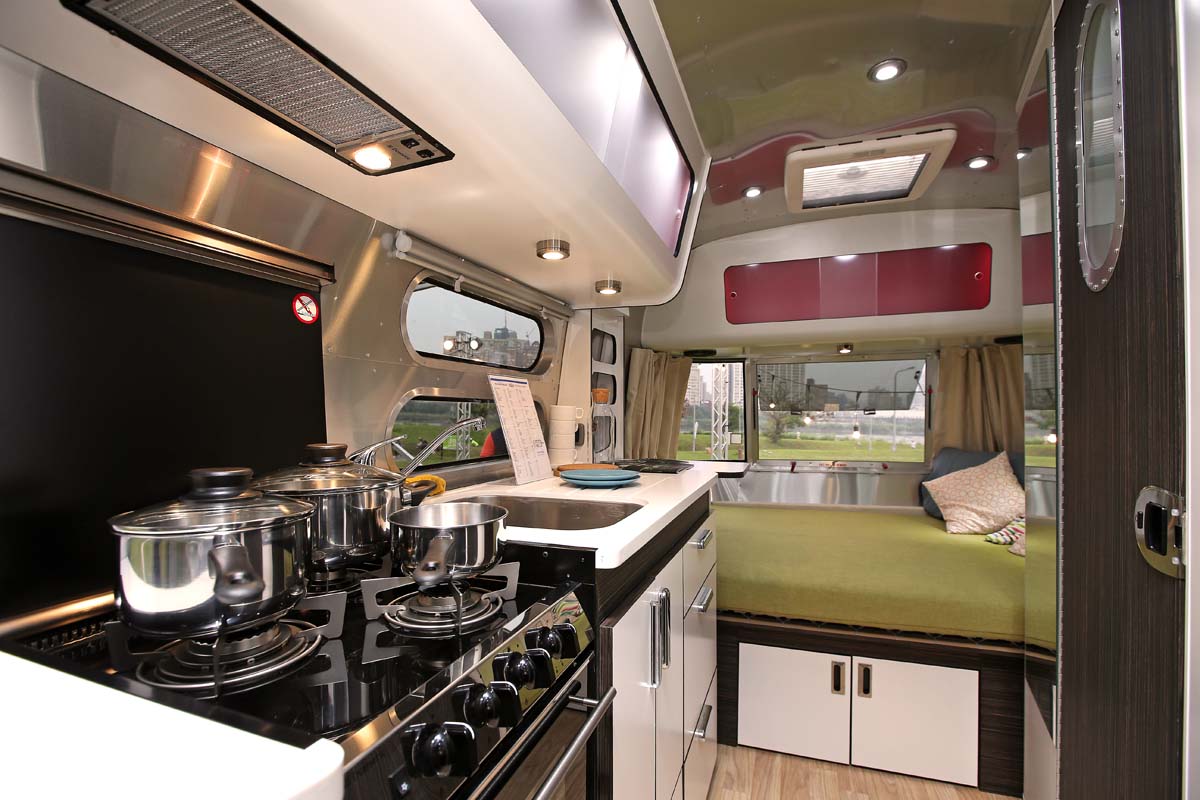 雖然Airstream在外型上都是採用經典的圓角造型,但是有多達6種大小不同的車型與配備可供買家選擇,實際上所能夠享有的空間感與舒適性還是有所差異性,以目前德國歐馬所引進的展示車款International 534為例,露營車身長、寬、高分別為681cm、229cm、265cm,如此龐大的車身受惠於鋁合金材質所打造,因此重量控制在1500kg。實際進入車內一看,配備相當齊全的車室彷彿就像是移動的「家」,舉凡家中所能看到的客廳、廚房、浴室、置物櫃與臥室都一應俱全,尤其全車擁有多達15處對外窗,所營造的空間感與舒適性,就算一次容納四名成人露營也都沒有任何問題。