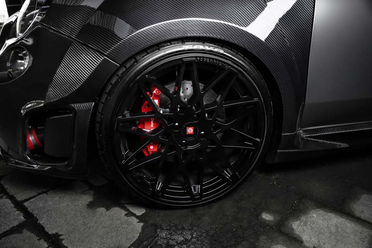 面對高性能的輸出,廠房為500 Abarth強化離合器和飛輪。此外,輕量化的18吋鋁圈內藏著自家的六活塞卡鉗和直徑322mm的大碟盤,搭載KW Clubsport避震器,強勁的底盤要煞住小身軀應該足夠了。對改裝車來說,輕量化和空氣力學是不能忽略的,全採用碳纖維寬體套件之外,引擎蓋、保桿、後側鏡飾蓋等細節一併用碳纖維,難怪廠房說為了這台車花費4年時間,限定打造5台。迷你超跑的身價可不迷你,Pogea Racing開價58950歐元,折合台幣約200萬,據說在當地可以買到Porsche 718 Cayman了。