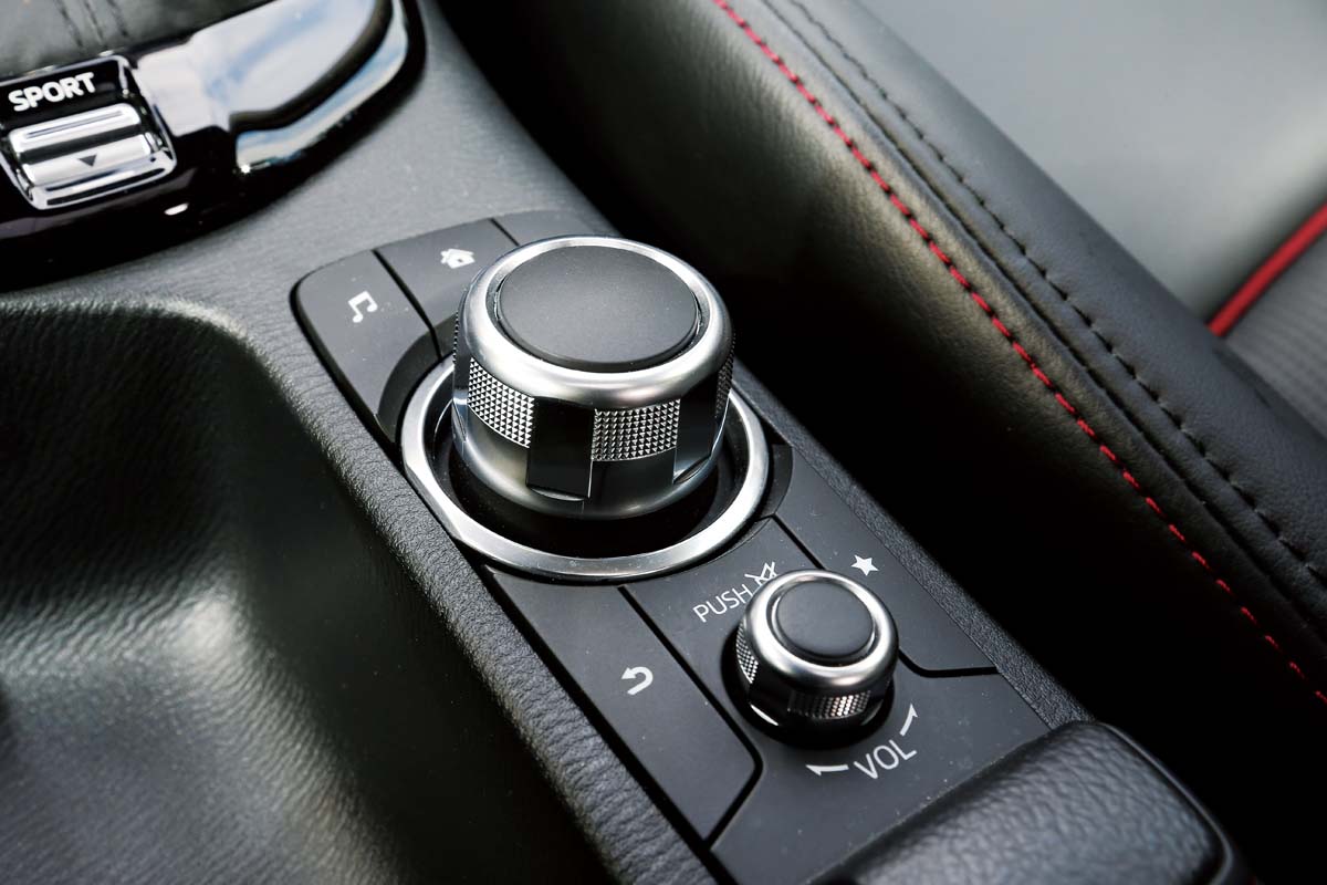 針對影音系統,CX-3中控配置7吋多媒體系統,除具有觸控功能外,於排檔後方亦配置與豪華品牌相仿的多功能控制旋鈕,讓駕駛無須過於分心便能進行操作,且介面設計也相當直覺,美中不足的是導航與倒車顯影列為選配,不過唯一配置的抬頭顯示器則帶來加分效果。CX-3車長與軸距雖有一定水準,但卻未能實際反應在車室空間表現上,從各項測量數據來看其僅與Juke相當,對於稍有空間需求買家來說可能會有些考慮;不過前座椅的支撐性及臀部與背部的包覆性表現相當出色,因此整個乘坐感受較其他車款來得好。後座膝部空間則過於擁擠,但與C-HR同樣接近房車的坐著點則稍微彌補空間不足缺憾。至於後行李廂空間很難與對手匹敵,所幸後座打平後的平整性以及透過隔板所生成的隱藏式置物空間為它加了些分數。