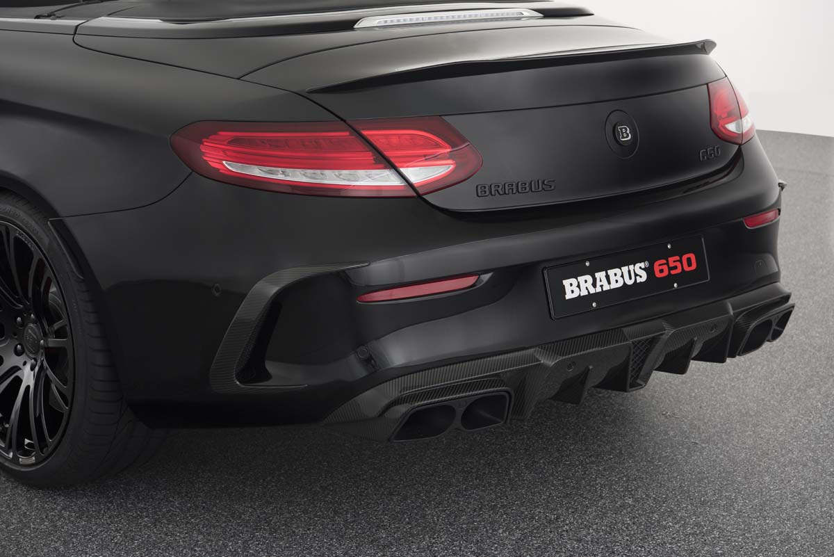 身為AMG的成員注定不平凡,而專精於Mercedes-Benz改裝的Brabus在2017日內瓦車展亮相改裝實車-Brabus 650 Cabrio。其中「650」代表搭載4升V8雙渦輪引擎,都可透過「650」套件增加140hp,650 Cabrio也不例外,透過Brabus PowerXtra B40S的程式改寫,達到650hp/83.6kgm的輸出,0-100km/h僅需3.7秒和320km/h的極速,與Brabus C63 S Estate根本是同一標準輸出,當然強化渦輪內的軸承是必須的。此外,20-40mm區間的可調式避震器搭配Monoblock 20吋黑色鋁圈是Brabus「650」很常見的套件之一。