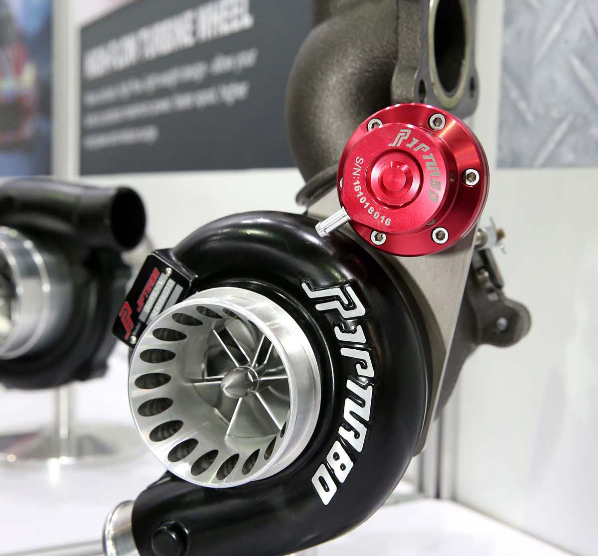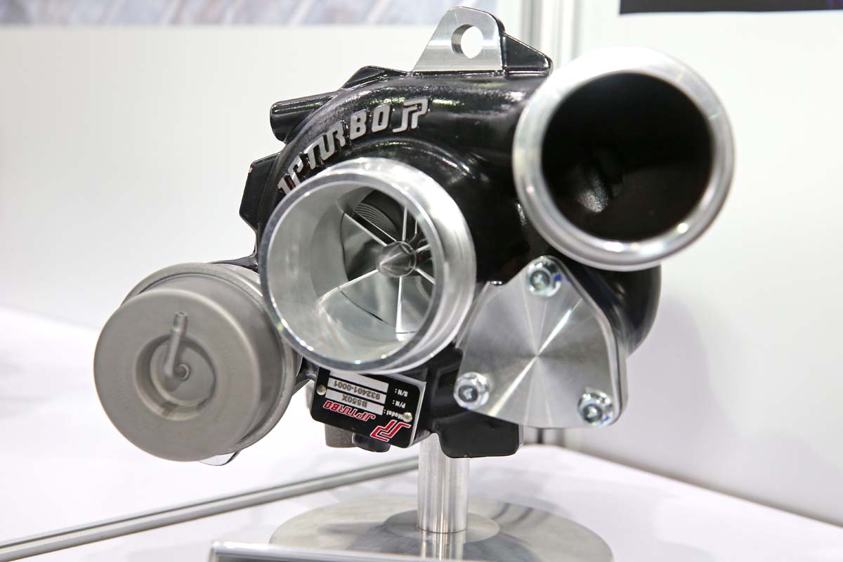 渦輪機除了動力的壓榨很重要外,Turbo Lag更是相當在意的一環,JP Turbo旗下全數採用滾軸軸承,主要目的就是為了得到良好的增壓反應,另外有鑑於缸內直噴的高壓泵浦優勢,許多過去我們異想不到的高增壓,現在原廠車隨便都能打上1.7bar以上,因此消費者還可加購適合高增壓的CNC鍛造葉片(對應2.0bar以上),陽極處理的紅色葉片及Actuator搭配起來更是韻味十足,今年更是推出A45專用原廠交換型渦輪,輕鬆提升到410hp的基礎動力。