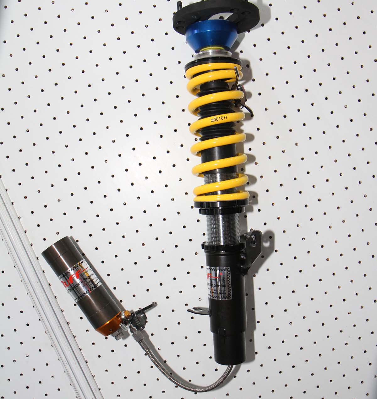 在國內BMW車主中擁有極高評價底盤套件專家-Ruff尚格,在今年的AMPA展中,展出的新款主力產品是採用外掛氮氣瓶設計+魚眼可調上座+3向軟硬可調設計的高階版單筒避震器,所謂3向可調就是16段回彈阻尼、25段高速壓縮阻尼與25段低速壓縮阻尼調整設計,可賦予車主極大範圍的調整空間,不論應付哪種路況或賽道環境,都能讓車輛平穩且高速的行駛,以追求更快的速度與成績。至於外掛氮氣瓶則是為了容納更多的阻尼油,除了提高更好的散熱效果外,也能讓阻尼作動更穩定。