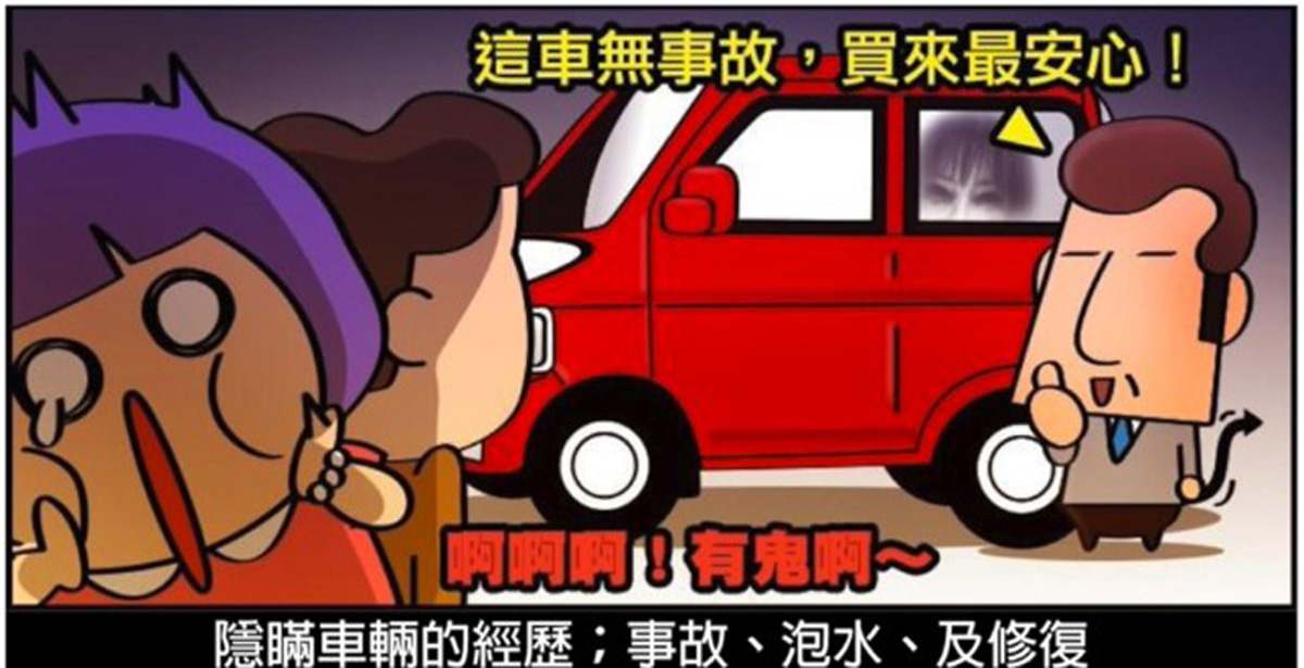 事故、修復、換件等經歷隱藏,不告訴消費者。隱瞞過去,車況完全不透明。