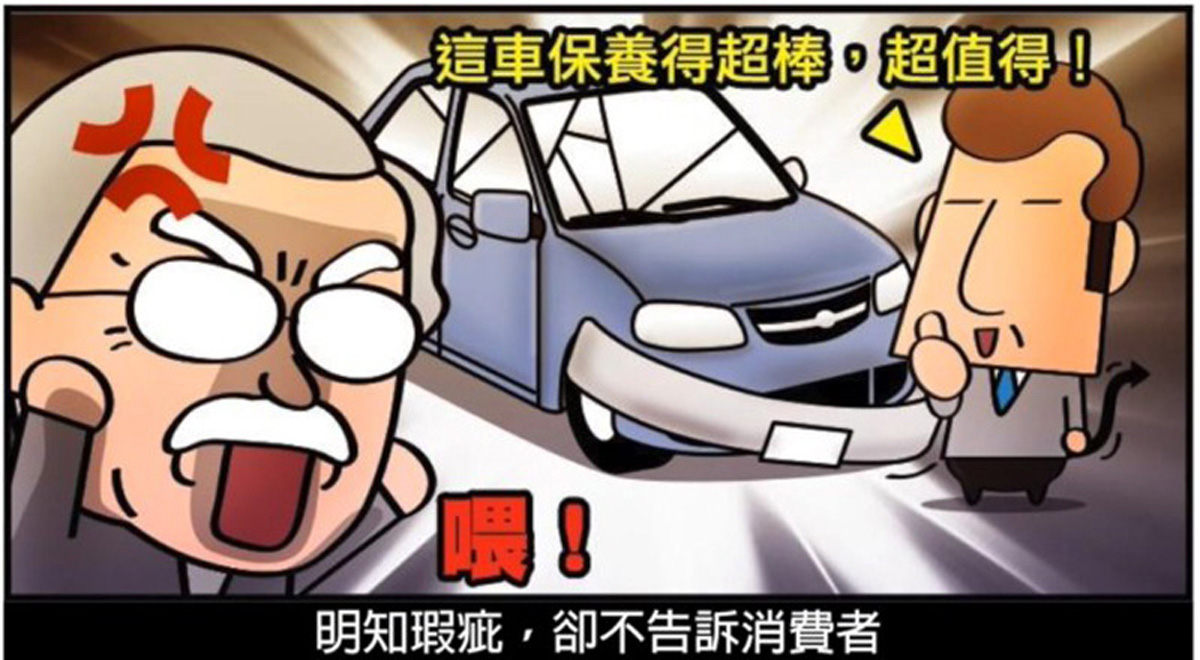 明明知道車子有瑕疵有問題,有些車商裝傻。該負擔的責任和義務永遠跟他無關。