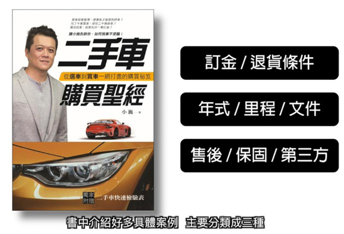 消費者若想買百萬內級距的中古車,可以先參考好店小施汽車所寫的「業內真相」《二手車購買聖經》。書中介紹豐富的具體案例,主要可歸納出3招:
