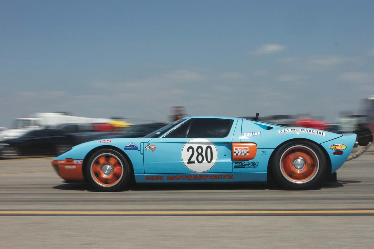 2006年型的Ford GT 5.4升的V8引擎,原廠就搭載上機械增壓系統,最大出力可達558hp/69.13kgm,不過M2K Motorsports則是卸下了機械增壓器,換上兩顆巨大的渦輪增壓器,將最大動力一舉壓榨到2500hp,並且為了讓車輛更加安全前進電腦部分則是交由NCS Designs來負責,採用MoTec M800電腦來創作各種競技版循跡系統,免得這2500hp的動力搗亂輪胎抓地力,空力套件及避震器則交給Ahlman Engineering來打造,在美國只要能超越200mph(約322km/h)就能稱得上超跑,而超過300mph(約483km/h)就能被放在NHRA的直線加速車領域,對於改裝廠來說是相當高的殊榮。
