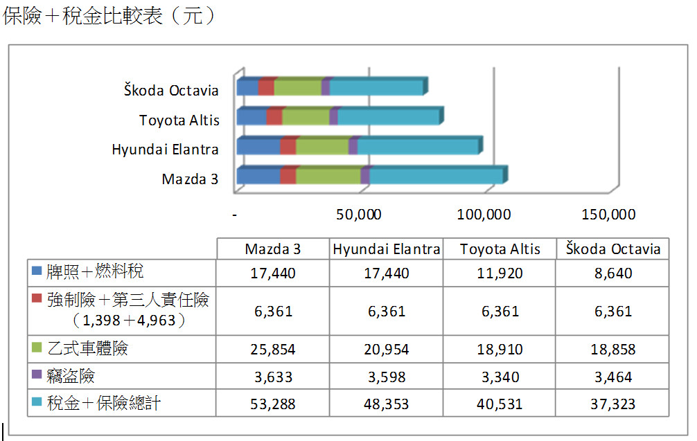 保險+稅金比較表(元)