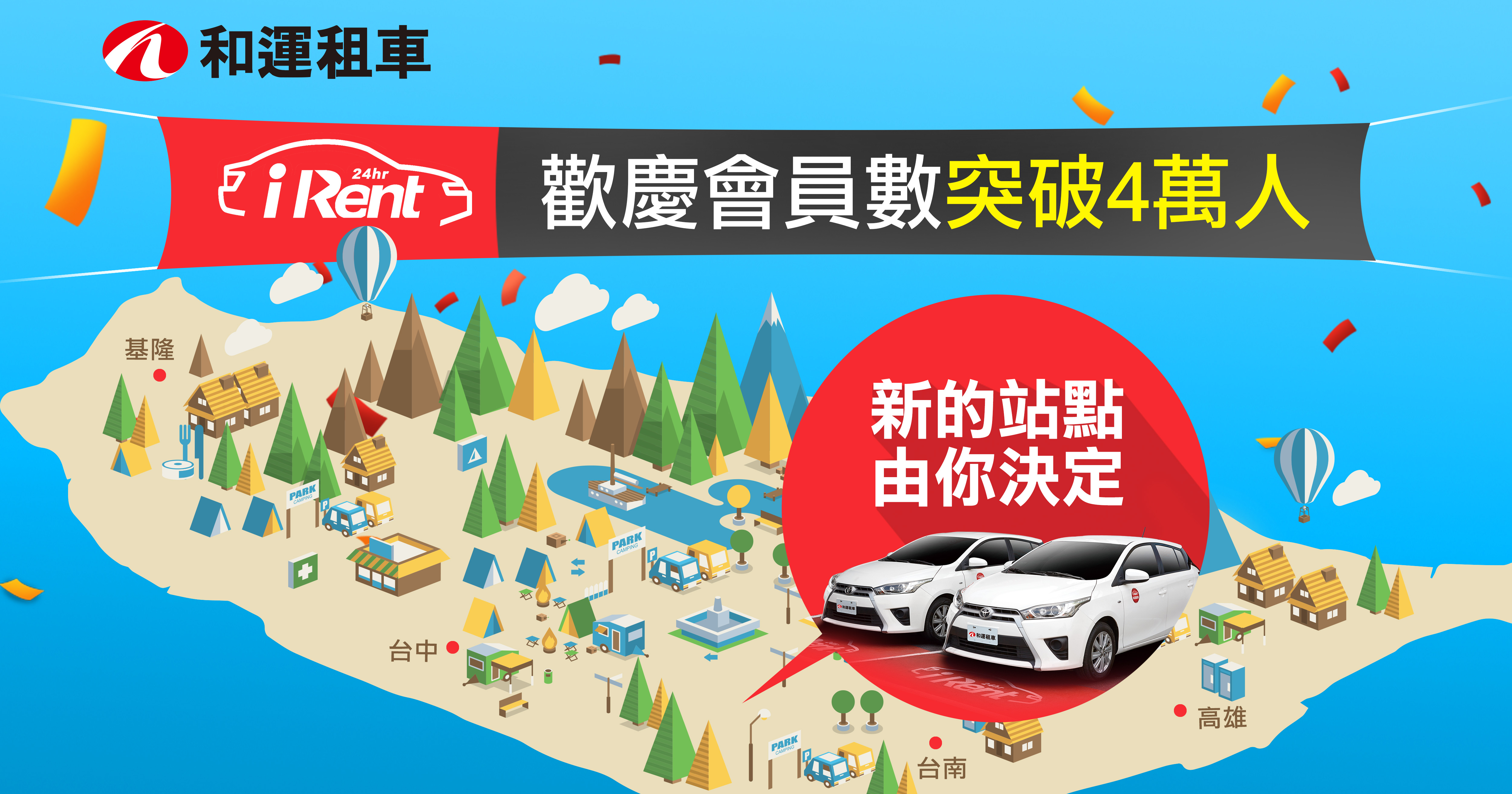 養車好難? 臨時需用車要跟朋友借車好麻煩? 你想要的,你在乎的,和運租車都知道!服務創立至今會員累積已超過四萬名,全台站點超過150個,24小時隨租隨還的iRent自助租車,為讓iRent服務更貼近使用者的生活,即日起推出「iRent站點集氣活動」,活動期間內(8/1-8/15)於活動頁留言心目中最希望和運設立iRent新站點地點,當集氣人數達到門檻,和運便會即刻籌備設站評估,讓您日後想租iRent時,附近就有租車站點,隨時開啟24小時輕鬆租車走的愜意生活!