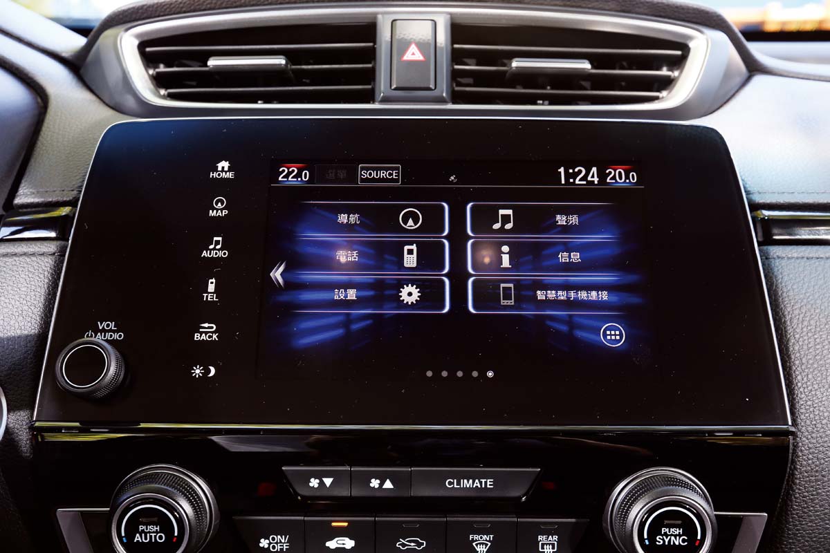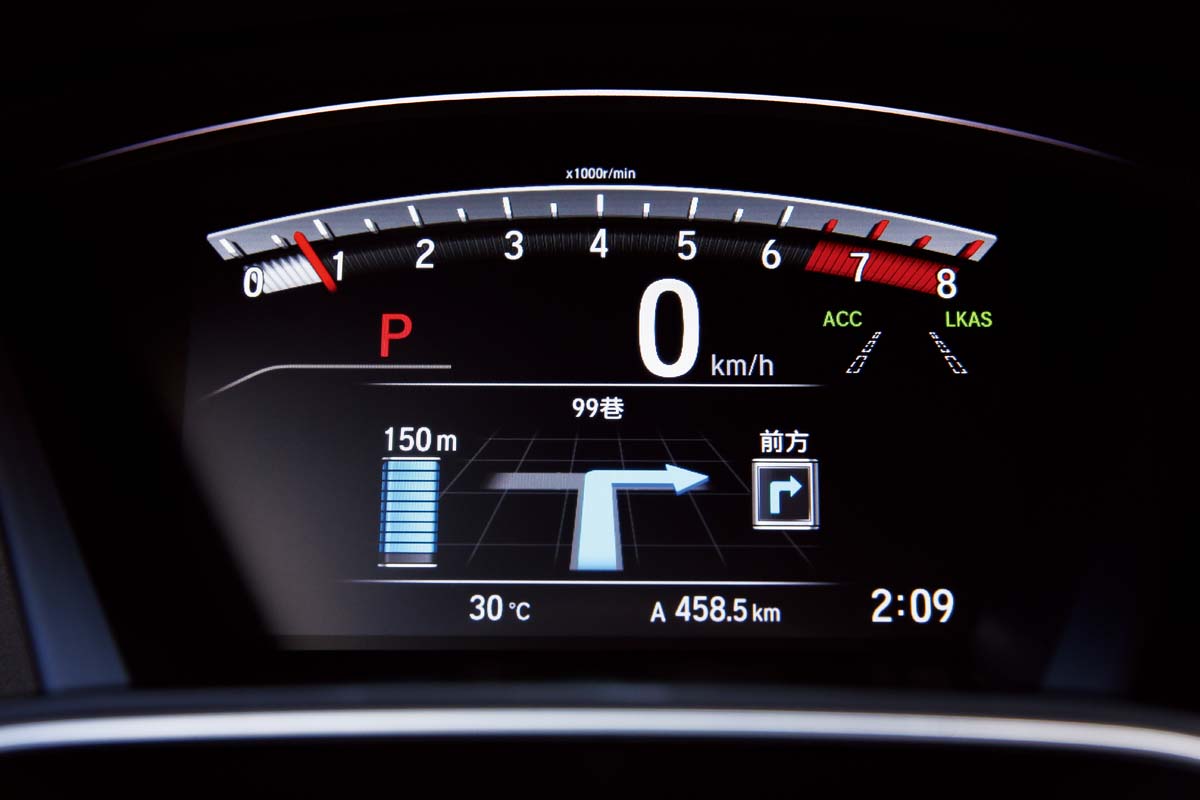 再者也透過控檯上7吋的觸控式液晶螢幕以及TFT彩色液晶儀錶與充滿功能按鍵的三幅式多功能方向盤,進一步襯托出以往較欠缺的科技感。此外,最令筆者喜歡之處就是內裝仍保持簡潔的設計風格,控檯音響與空調沒有過多繁雜的按鍵,且操作使用便利就手,完全是本田式的風格。至於配備部分(請參閱所列各車型配備編成表),最大的亮點當然就是Honda Sensing主動式安全防護系統,透過這套系統中的ACC主動式車距調節定速巡航、LDW車道偏移警示以及LKAS車道維持輔助等系統的組合運作,就能讓車輛在30~180km/h時速間主動跟隨前車與道路標線前進以及自動煞停,不僅能有效紓解長途駕駛的疲憊,更能提昇行車的安全性,只不過這套系統的使用操作程序略顯複雜,得多幾次練習適應才行。