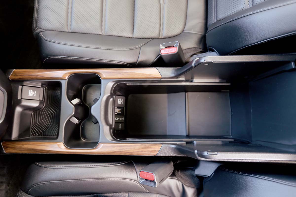 便利的收納與置物空間,以及座椅的變化機能與乘坐空間表現,當然也是一部休旅車所強調的產品特點,這點新CR-V的表現真的無話可說。首先中央扶手下方的置物箱就設有多個小型置物空間,且透過托盤的運用與移除(三種模式),更能置入較大型的提包或物品,完全不怕小東西沒地方放。