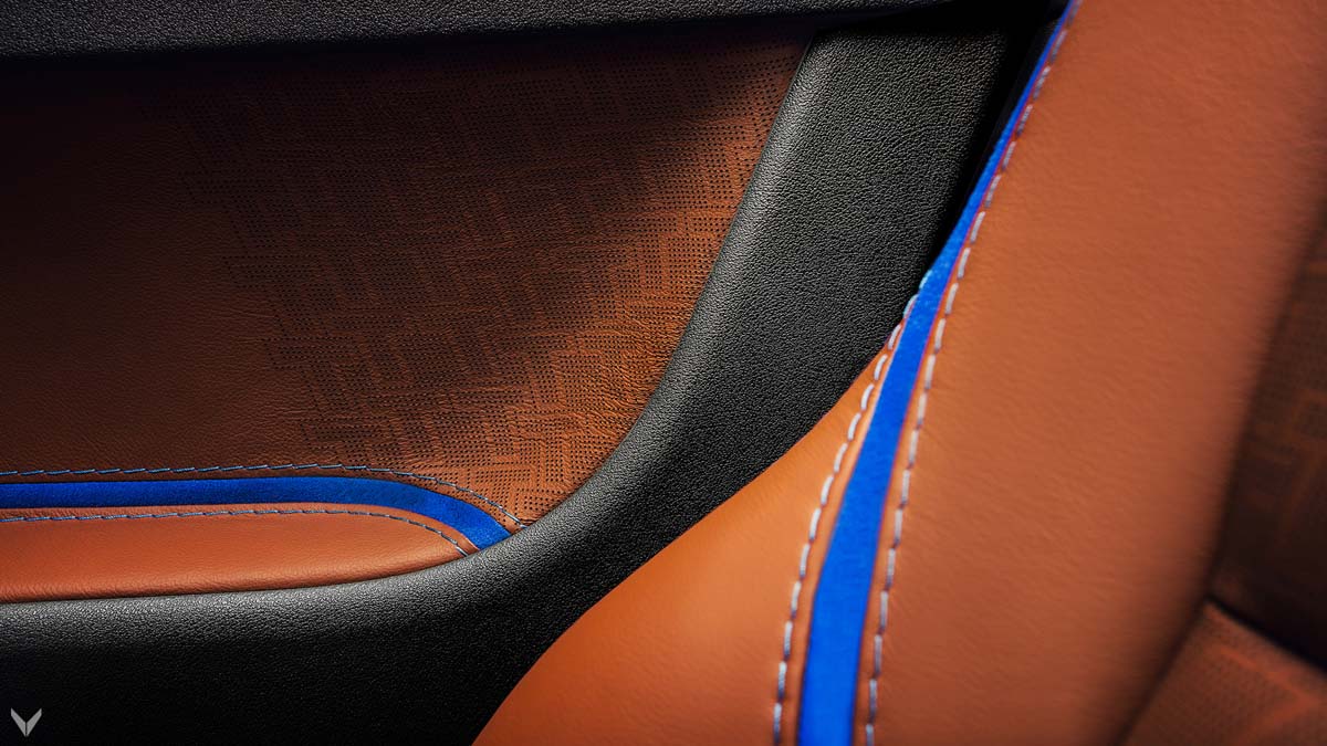 對於敞篷車的顏色和風格的設計要比硬頂的更加周全,因為你同時能看見車子的外觀和內裝。所以Vilner設計師為配合藍外觀的Audi TT而採用相應的藍色鋪設內裝,包括座位和門飾板的條紋、安全帶和方向盤中的車縫線。而座位到中央位置皆由棕色Alcantara皮革包覆,仔細看你會發現門飾板和椅背有「TT」字樣的穿孔設計,是沿襲M.Benz CLA的作法。此外,車主也在頭燈和尾燈加裝LED元件,讓夜晚的照明看起來更有現代感,同時也延續這具擁有180hp的1.8升直四渦輪引擎的生命,載著車主兜風也不錯!