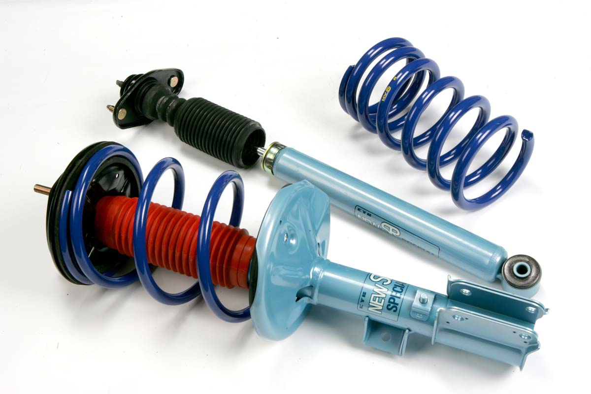 「套裝型避震器」外型上跟原廠避震器比較類似,採用的彈簧多為大直徑設計,與高低可調型避震器的小直徑,且直捲式彈簧有很大的不同,且多數都無法調整車高,只能透過彈簧的長短或軟硬來設定車身高度,因此該產品又有另外一種名稱,叫做「原廠強化型避震器」。這種避震器坐起來不會感覺很硬,車高也無法降到把輪胎藏到輪拱內,價格則是位於原廠避震器與高底可調避震器之間。