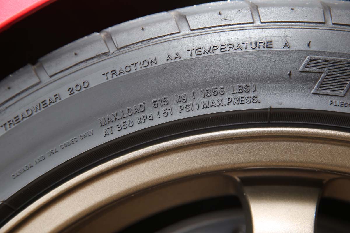 至於抓地力部分,其高低通常可從Treadwear值(簡稱TW值)來做基本判斷,數值愈低抓地力愈佳,相對耗損速度愈快,且胎壁也會愈硬,乘坐起來會比較難以兼顧舒適性,數值愈高則反之,目前一些舒適胎的TW值大約為320~460之間,高級房車胎則為280,頂級街胎多半為180,低於此數值則已歸類為競技取向的輪胎,如果您想兼顧操控與舒適的化,可以選擇TW值大約在240-280的輪胎即可。