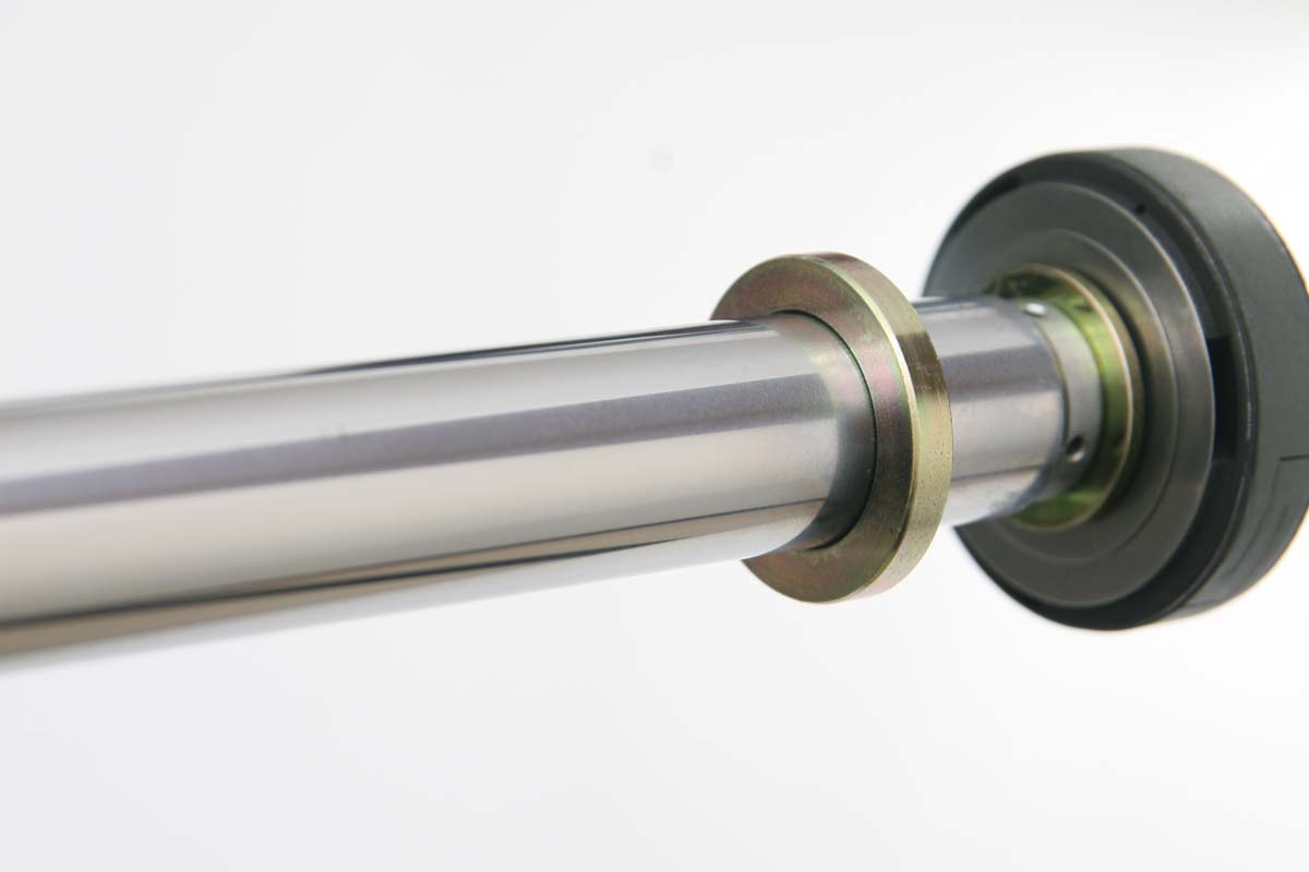 至於何謂單筒式避震器?這類型的減震筒結構較複筒式簡單,主要是由二個活塞、管身、軸心所組成,上方第一個活塞與軸心連接,並緊貼管身內側進行上下往復運動,第二個活塞則是獨立於減震筒的下半部,上方為阻尼油而下方則為高壓氣體。