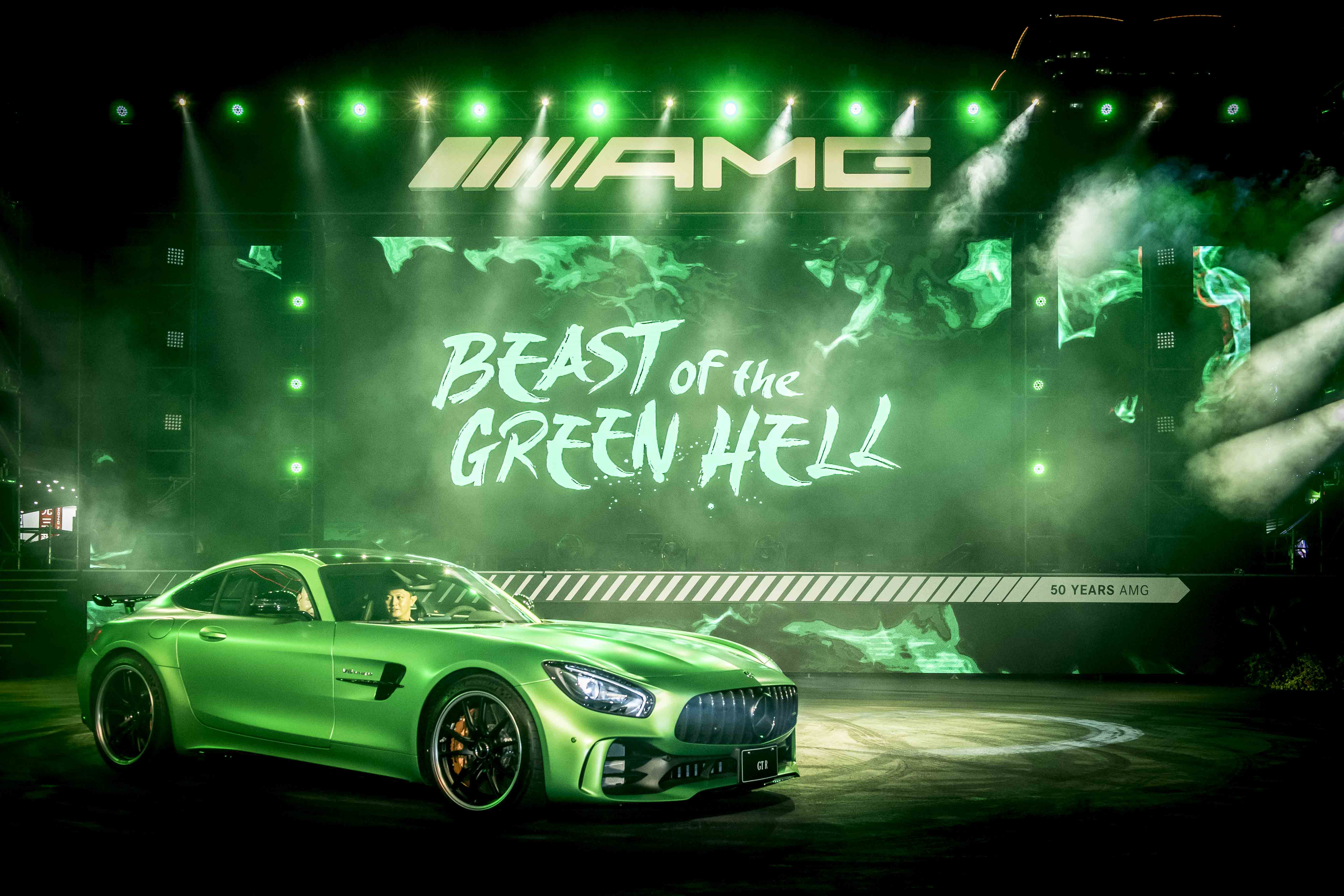 ‧ 繼 #AMGPopUpTaipei 神秘獸籠出現引發群眾圍觀,日前綠色猛獸更破籠而出現身台北各地,引發社群媒體火熱話題,為 AMG 50 週年活動再掀高潮,台灣賓士並於7月25日在台北信義都心打造叢林競技場,成功捕獲稱霸綠色地獄的性能猛獸 AMG GT R。