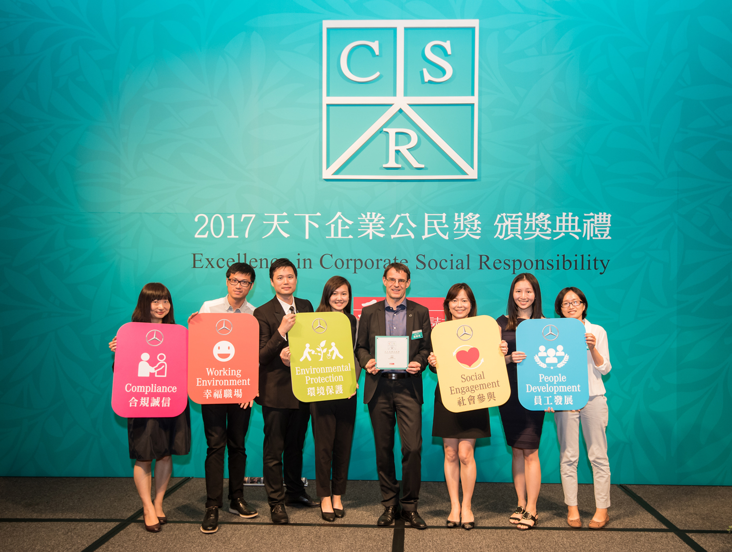 首次奪冠的台灣賓士(8.900分),近年新增保育台灣原生樹種的「Mercedes-Benz星夢想‧生態復育計畫」、弱勢青少年假日體育班的「台灣勞倫斯體育公益計畫Laureus Taiwan Project」等,關注本土需求與呼應國際趨勢上用心顯著。身為台灣豪華汽車產業的領導品牌,台灣賓士以「Inspiring the Future啟發未來」作為社會企業責任的核心,投入在地原生樹種復育計畫、為減少碳排放而努力。另一方面,更與在地公益夥伴攜手,為弱勢青少年、孩童打造光明且充滿希望的未來,這一切回饋社會的努力,讓台灣賓士榮幸成為此次天下企業公民獎外商企業組唯一進入前五名的汽車公司。「為延續德國賓士母公司永續策略,我們在2015年正式對外宣布將CSR正式列入營運策略目標,並成立CSR跨部門中樞決策單位—永續發展委員會(Corporate Sustainability Committee, CSC),更將聯合國大會17項永續發展目標(SDGs)融入整體CSR計畫當中,並以此作為發展在地星夢想計畫(StarDreams)的主軸」。台灣賓士邁爾肯總裁表示,「對於台灣賓士來說,CSR並非只是概念,而是將其融入我們每一個業務環節當中」。
