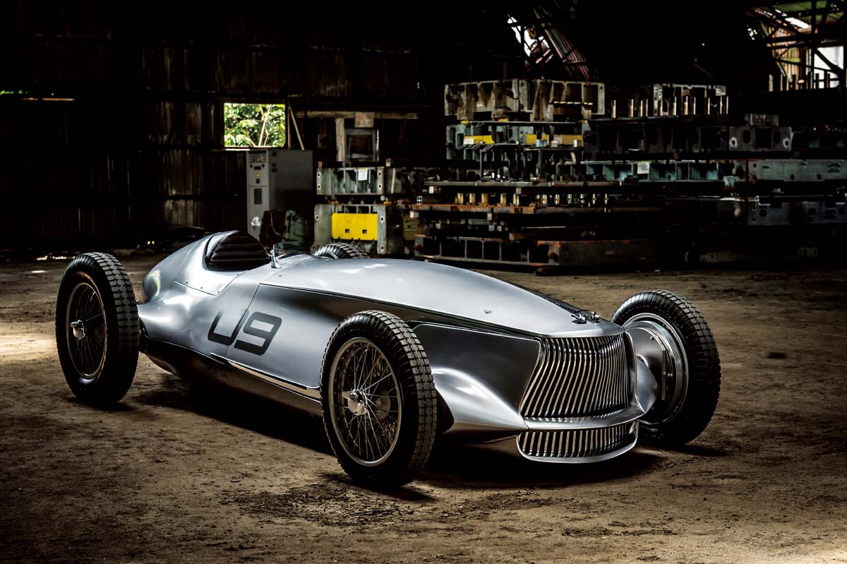 Nissan集團中的高階品牌Infiniti,日前發表了一部露輪式的電動復古跑車,並稱之為「原型車9號」。這部車展現Nissan和Infiniti的創造力、藝術性和精湛的手藝,它代表了1940年代賽車隨著時間的演進而重新建構,並結合傳統工法和現代技術共同創造出的一款賽車。