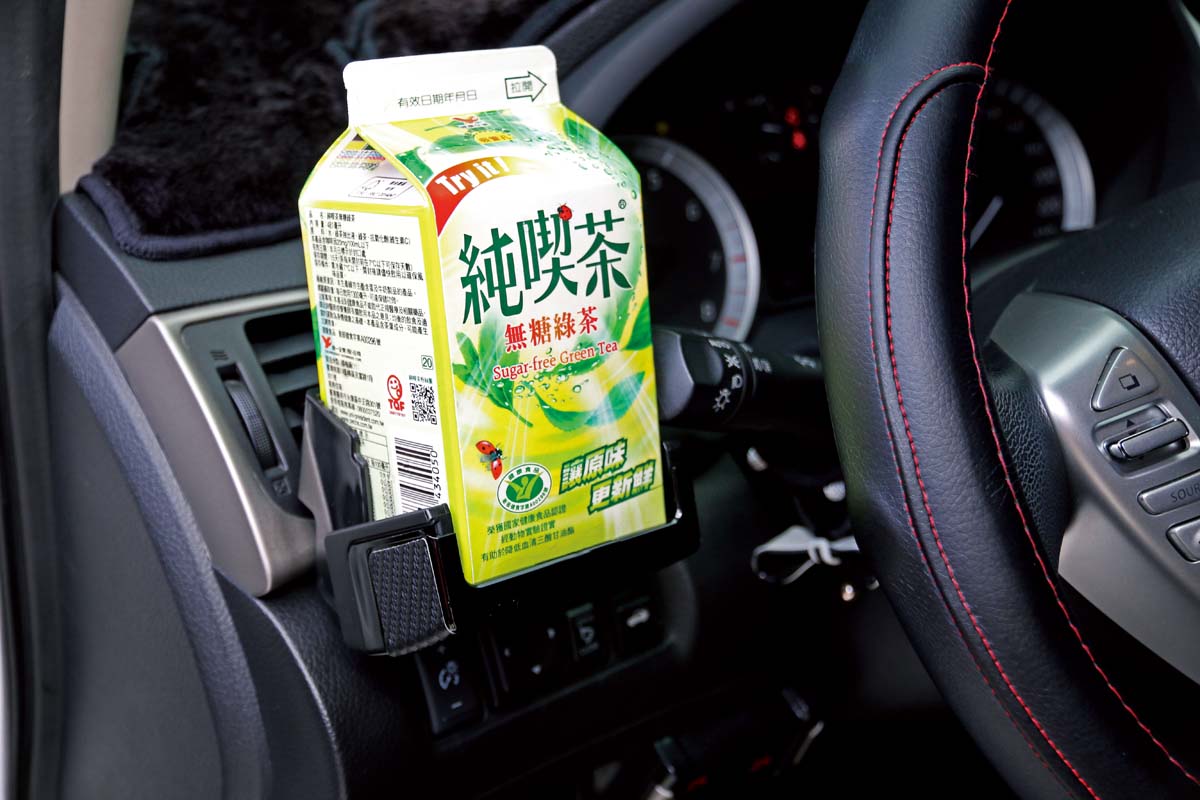 現在市面上所販售的飲料罐形狀可說千奇百怪,圓的、方的、扁的都有且大小不一,因此一旦買了與車上置杯架形狀或口徑不合的飲品時,就只能想辦法小心翼翼地將它擺放在車上某處,但在沒有固定的情況下往往一個煞車或轉彎,飲料就翻了、灑了,於是美美衣服弄髒了,接下來就是一連串的手忙腳亂了,對開車造成嚴重影響。因此一個可以對應相當多飲料罐形狀與大小的置杯架就更顯重要與貼心實用了。