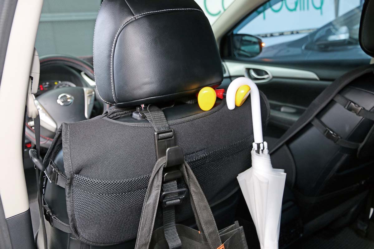 對於把車子當作是家中一部份的女性車主來說,車內散落著大大小小的個人用品一點也不奇怪,不過各位是否曾想過,若一旦緊急煞車的話,那這些散落在車內各處的面紙盒、錢包、化妝包,眼鏡盒、提袋、飲料罐及雨傘等,絕對會不顧一切向前飛奔而去,嚴重影響開車行為。因此在後座椅背裝個多功能收納置物袋以及特殊固定掛勾等車用配件,就能將這些大小雜物、包包等整齊收納於內,一來讓車內看起來清爽,更不會因為突來的煞車動作而讓車內物品滿天飛。