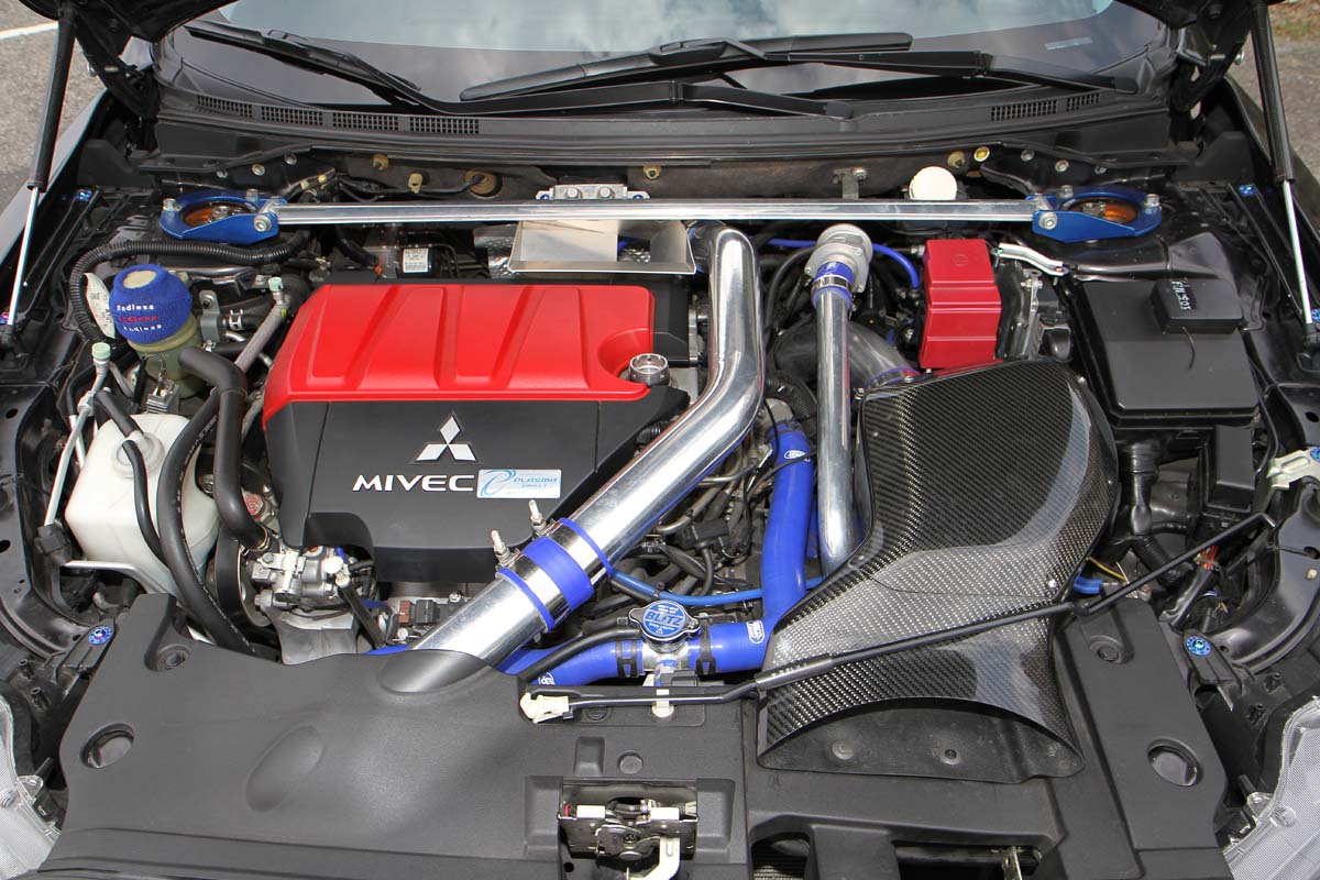 說到EVO X,其所搭載的4B11紅頭引擎,是EVO在進入十代目後,用來取代4G63之用新世代引擎,改採全鋁合金本體的4B11,重量比過去鑄鐵材質的4G63更輕上12.5kg,在前方為吸氣側、後方為排氣側下,引擎整體高度也成功地下降了10mm,對於減輕車頭重量來說頗有幫助,可獲得更好的操控指向性,另外藉由MIVEC可變氣門正時與雙渦流Turbo的搭配下,在低速區域便擁有充分的動力輸出並兼顧高轉速的動力表現,3500rpm即可爆發出41.5kgm的最大扭力(日規43.0kgm),最大馬力甚至高達297hp(日規300hp),油門反應相當敏捷,是前幾代車型無法比擬。