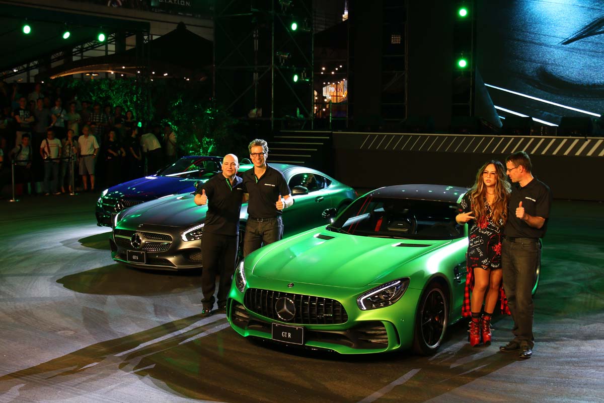 繼AMG性能概念館於台北信義區開幕後,台灣賓士發表車迷們期待的道路版Mercedes-AMG GTR,在紐伯林賽道以7分10.9秒的單圈記錄打破量產FR車最速紐伯林成績,再次將GT車系推向極限。身為首輛以高比例繼承賽道精髓的道路版跑車,不僅車身塗裝專屬的紐伯林消光綠,還搭上源自300SL的Panamericana直柵式水箱罩、AMG主動空氣力學進氣格柵、大尾翼與競技氛圍滿點的駕駛艙,而碳纖維車頂、碳纖維車外後視鏡罩、以及前葉子板散熱孔上的亮黑色飾片則構成AMG GT R的強烈識別特徵。