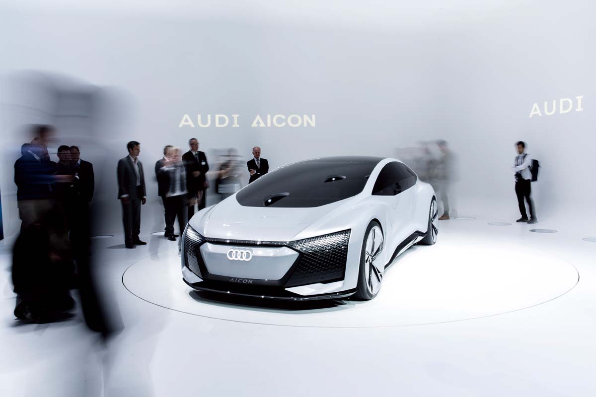 Aicon Concept這部概念車,具備Level 5自動駕駛技術,亦即任何狀態下全然無需人手控制車輛,因此得以完全取消車內包括方向盤、排檔桿、油門/煞車踏板以及儀錶等等介面,身處車內就像坐在一間超現實的房間般,圍繞周圍的大型化觸控螢幕,則可供乘客輸入目的地或提供影音串流以及網際網路等服務。