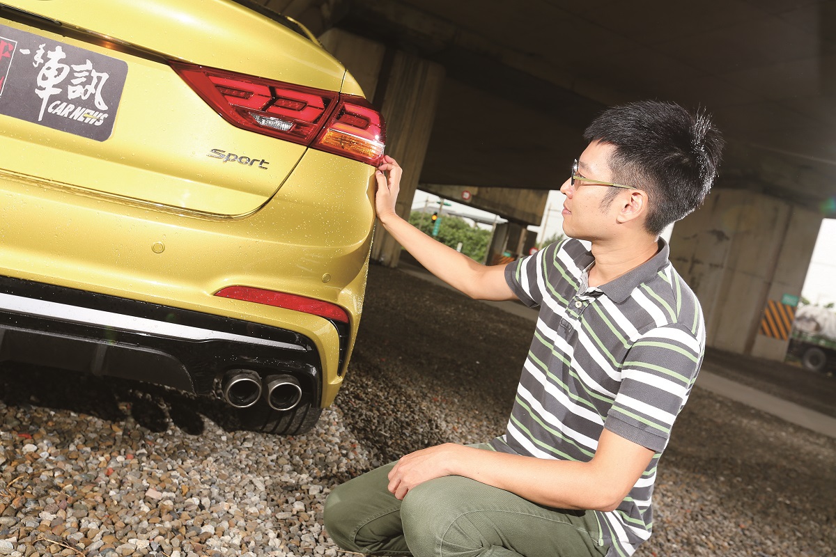 ▲車尾最引人入勝的地方就是後保桿與雙出尾管,整體看來也是頗具跑格。