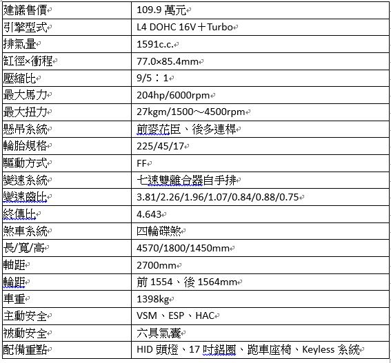 ▲1.6升渦輪引擎壓榨出204hp/27kgm最大輸出已經是非常出色的成績。