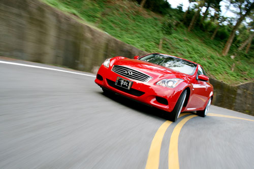 不過,筆者認為這部車若是當收藏品不開真是可惜,VQ37的引擎咆嘯聲就應該響徹雲霄,發動引擎之後油門鐵定「一拜」、檔檔拉到高轉速,我不想用俗氣的「爽」字來形容G37的強悍動力,但看著車身飛快前進模糊的車外景物,還真是爽啊!不過其避震器仍偏向舒適設定(對我而言),彎中的反應不夠俐落,稍微減少奔馳的樂趣,只要稍加強化之後,要擔心的不是車開不快,而是有沒有那個心臟跟神經了…