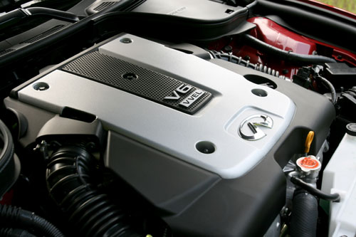 | 這具前中置的VQ37VHR引擎具有VVEL可變氣門揚程控制,最大出力達到328hp/37.0kgm,最高轉速則可輕鬆拉至7600rpm。 |