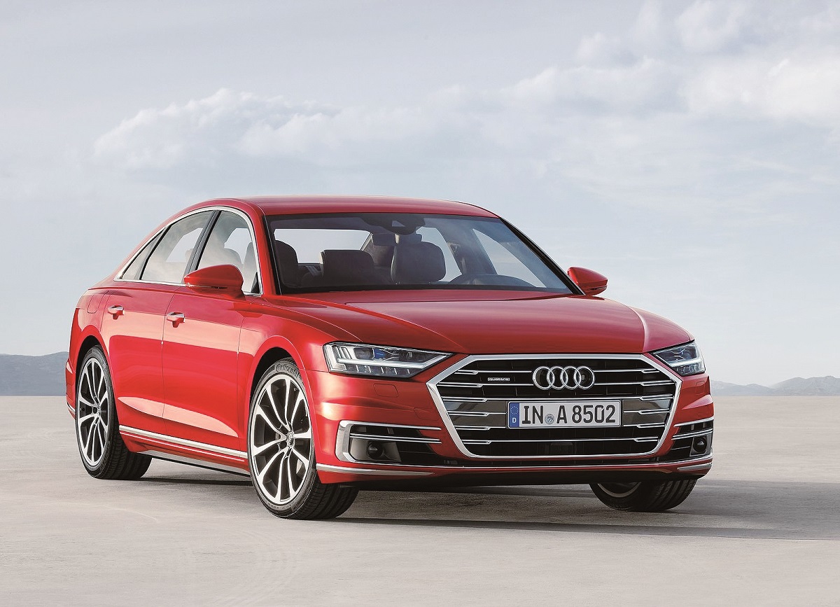 才於2017年7月正式發表的全新世代A8高級豪華旗艦,不僅擁有嶄新的內外造型設計外,更搭載了Audi最新的各項先進科技與豪華舒適配備,尤其是具備Level 3的自動駕駛技術最受囑目,這套裝置透過Audi AI Traffic Jam Pilot塞車自動駕駛系統的運作,在高速公路或快速道路時速低於60km/h的狀況下,系統可完全接管車輛,並自主完成加速、減速和轉向等動作。而全新A8在動力配置上除了擁有3.0 V6、4.0 V8以及6.0 W12三款汽油引擎以及3.0 V6、4.0 V8兩款柴油引擎外,未來還會推出e-tron quattro動力車型,採用3.0 TFSI引擎搭配電動馬達,提供449hp、71.4kgm最大動力輸出。