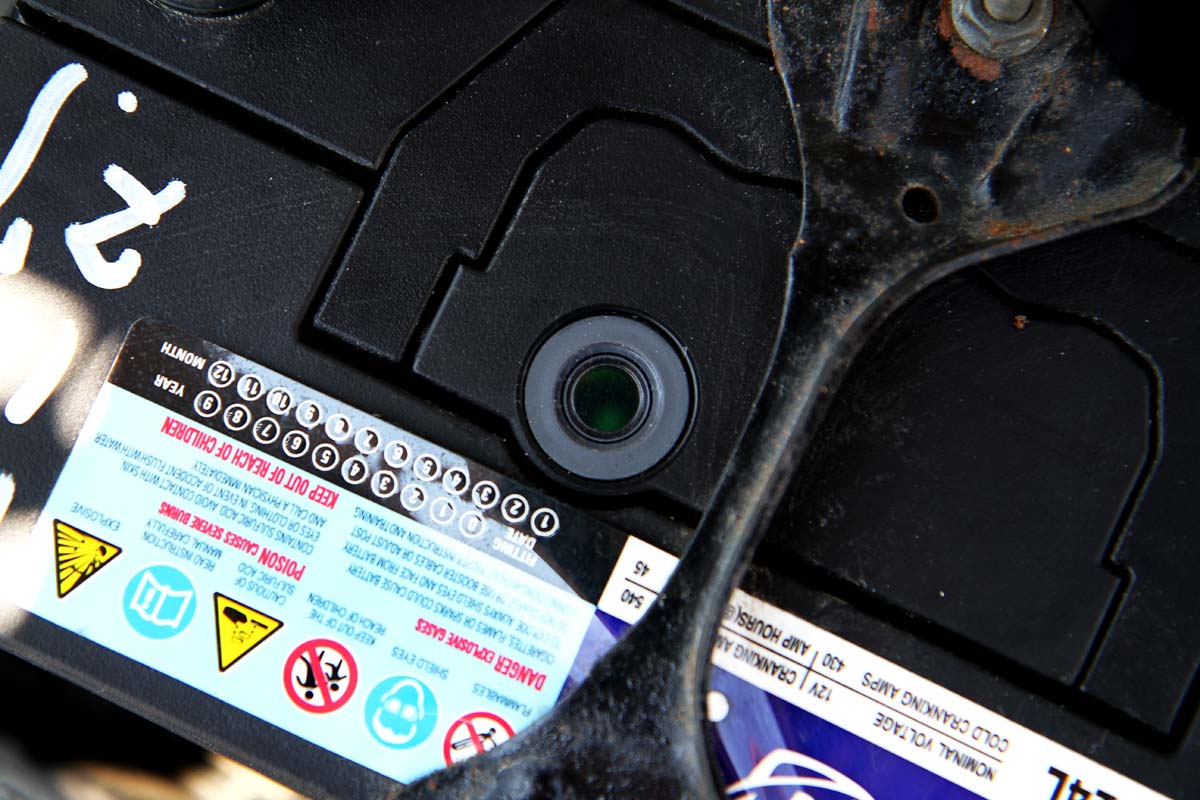 隨著汽車電子化的程度,行駛時所需耗費的電力就愈來愈多,如此也導致電瓶的壽明往往無法像老車一樣,可以用上個3-4年的時間,能有2年以上的壽命就算賺到了,因此車況檢查中,對於電瓶的檢測也是一大重點。目前多數新車出廠時所標配的電瓶都是免加水設計,因此對於電瓶的檢查,可透過比重視窗的顏色,來判斷電瓶的健康狀況,藍或綠色代表正常,紅或無色則代表要加水或檢查了。