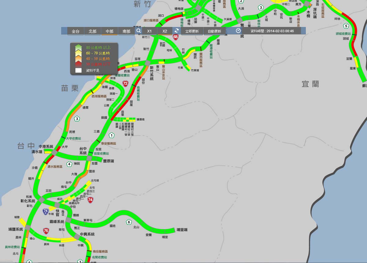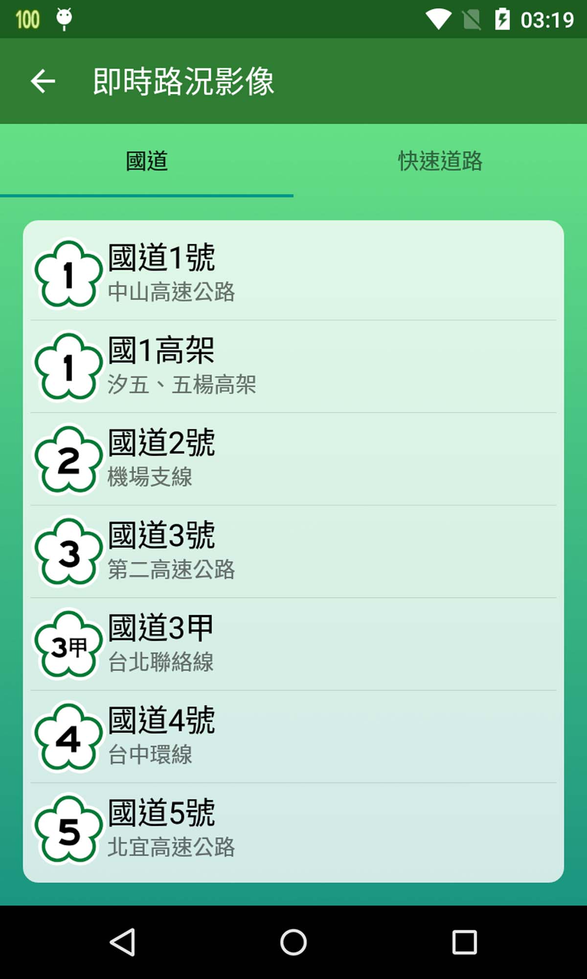 別看這款Apps的logo就誤以為只有國1的即時路況而已,它能顯示汐五、五楊、國2、國3、國3甲、國4、國5、國6、國8及國10(橫向快速道路12個線道)的即時路況,簡單的介面,跟Google Map一樣也利用顏色來區分當前的路況,在開車時透過手機螢幕就能判定,而且還可以查看沿路CCTV的即時影像,另外還提供道路施工、壅塞、濃霧、散落物等特殊路況事件,都在「道路事件」內查詢。作為路況即時通的Apps,也有預估各交流道的當前時速,好讓駕駛者能在規劃的路線中判定下一步,而這款Apps屬於國家軟體,因此普及率相當高。