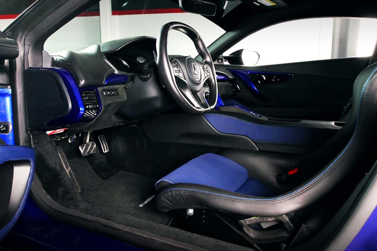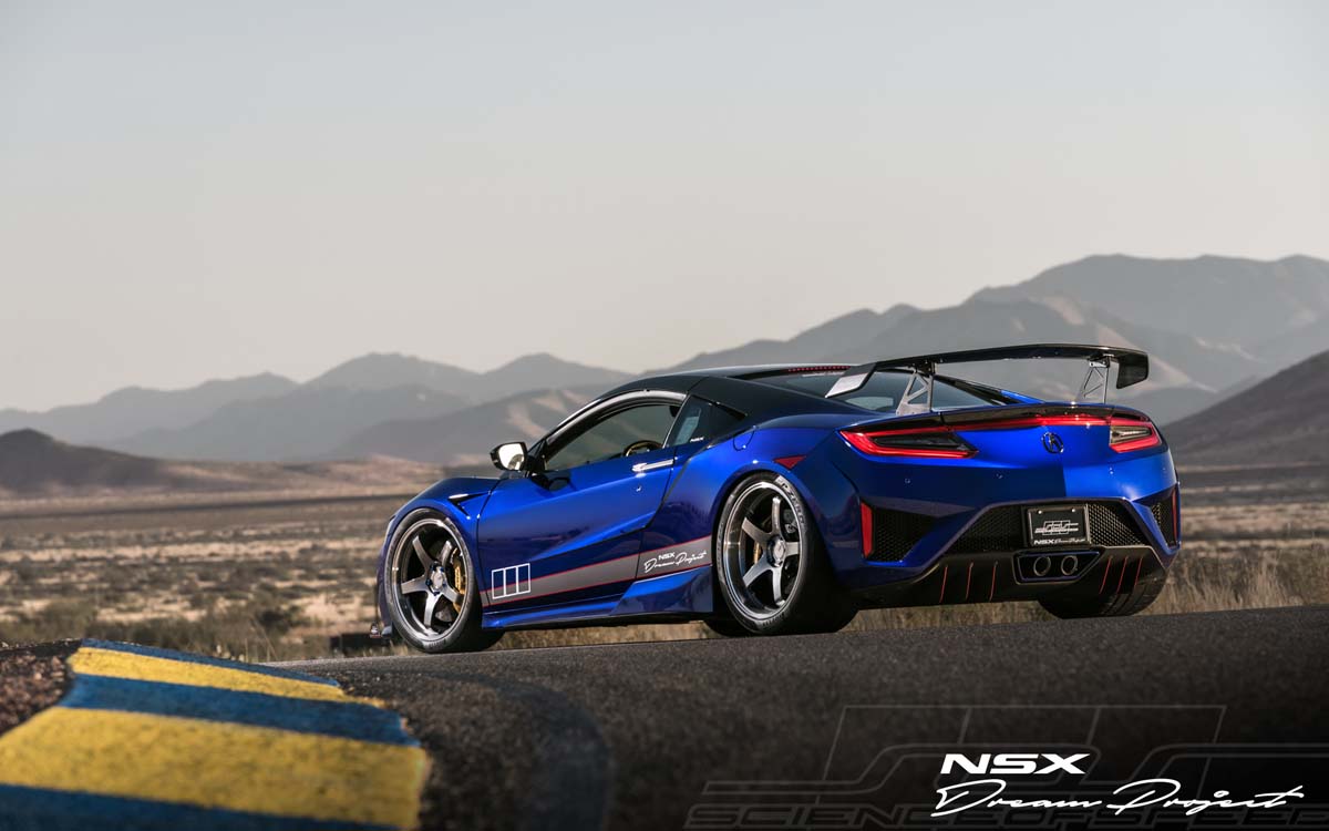 在外型上並沒有誇張的動刀,不過從前保桿的定風翼、加寬的碳纖維側裙導流孔、大後分流器以及賽車用尾翼,皆由ScienceOfSpeed自身打造的產品,讓NSX更接近GT4廠車造型。內裝方面反倒不作廠車化,利用藍色飾板和黑布料包覆內裝,最多換個Recaro Pole半桶型賽車椅和加裝gaugeART多功能螢幕。