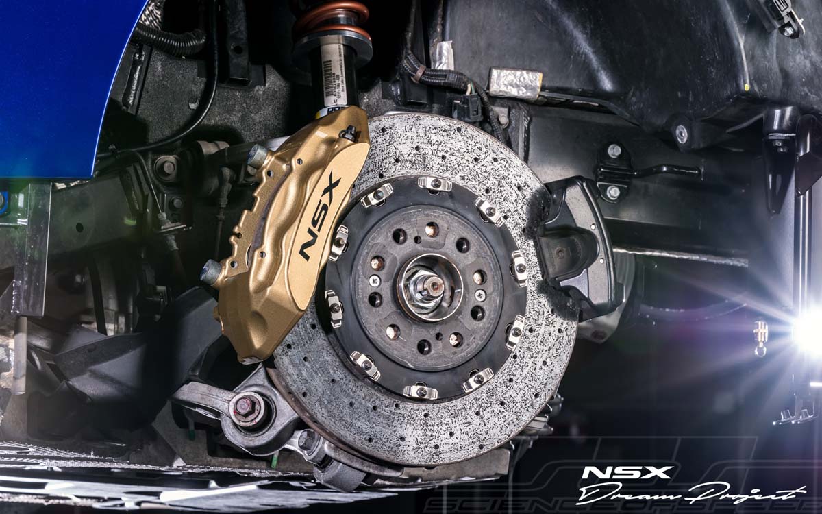 這台命名為「Dream Project」的NSX,ScienceOfSpeed團隊為它強化排氣系統和高流量空氣濾芯,還有專用渦輪downpipe,甚至裝上酒精噴射系統,增加了37hp/4.28kgm的動力,610hp/70.03kgm就此誕生。另外,考量到NSX在路上的便利性,換裝的iLift懸吊系統導入自動感應,最多可抬高50mm車頭,以免車底被路面起伏「磨蹭」的鳥事,如果路夠平坦又想貼地的話,能給足你降低25mm的車高。彈簧下的鋁圈也換上GT廠車最愛的5幅寬骨架(可惜螺帽不是一體式),搭配Pirelli Trofeo R的前20吋和後21吋輪胎,連輪內的Brembo煞車碟盤都是碳纖維/陶瓷的複合材料,能看出團隊下賽道的野心。