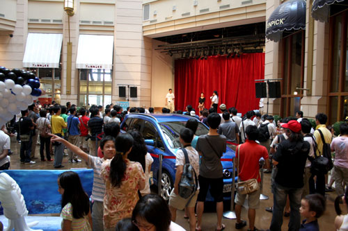 當天一大早十點車友陸續抵達台茂中心側廣場,透過俱樂部熱心會員義工們的協助依序進入會場,接著展開DIY改裝保修示範與汽車零件展示說明。中午車友們則可利用台茂熱情提供之美食街折價優惠與場內相關遊樂設施體驗,午餐過後於台茂室內三塔劇場舞台區展開有獎問答、摸彩與Model選美等活動介紹,逐漸將場內聚會氣氛炒熱。