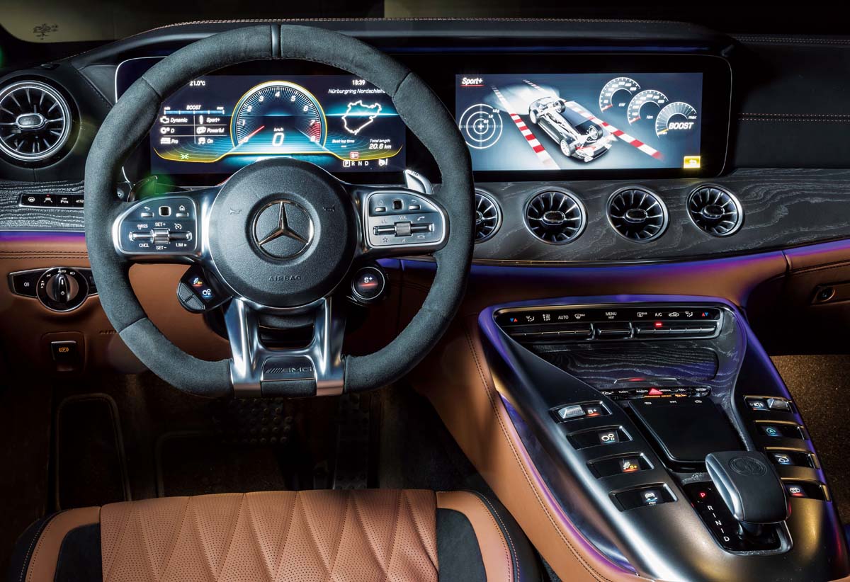 至於動力單元才是AMG GT 4 Door Coupe的重點,並在車展中一併發表了53、63、63 S三種車型,其中53車型搭載的是3.0升六缸渦輪增壓引擎,也和CLS一樣導入了EQ Boost 48V的技術,因此有著453hp/53.1kgm最大動力輸出,0~100km/h僅需4.5秒。提到AMG當然還是要看63,AMG GT 63以及63 S都是採用4.0升V8雙渦輪增壓引擎,輸出功率分別為576hp/81.5kgm、630hp/71.9kgm,在九速AMG MCT變速箱與4 Matic加持下,63只需3.4秒即可加速破百,而63 S更僅需要3.2秒便可輕鬆達成,另外包含AMG GT才有的後輪轉向系統也一併導入4 Door Coupe車系,看來紐柏林最速四門房車的頭銜,將會有最新的挑戰者。