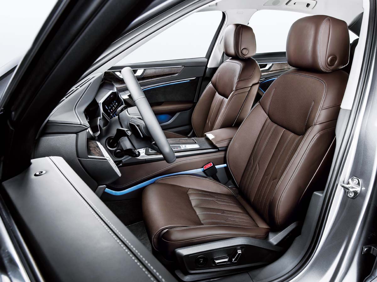 即便外型上仍舊依循Audi「輪廓圓潤、線條剛硬」的設計語彙,但新A6在更為流線的前提下,塑造出最低0.24Cd的風阻係數,帶來更好的油耗與車室靜肅性;此外,更高比例的高剛性輕量化鋼材運用,也讓行路品質更勝以往。在車長、車寬及車高分別增加7mm、12mm及2mm後,新A6也具備較舊款為佳的乘坐空間表現,配合重新設計的座艙與座椅規劃,令乘坐舒適度增色不少。