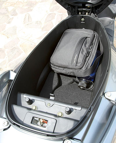 | 寬而深的置物空間,具備實用的收納功能,這是速克達該有的天職;特殊設計的轉軸彈簧機構,能夠撐起座墊,有如改裝氣壓頂桿般之功效。 |