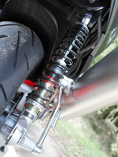 | 高檔的義大利Bitubo避震器,不論市區或山道的優良表現皆令人難忘,其售價還比國產頂級避震器便宜。 |