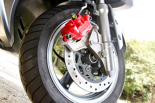 順暢飽滿的排氣,與Malossi的傳動組相輔相成。以獨特雙曲率普利盤走跳Scooter改裝戰場的義大利Malossi,其拿手絕活在於維持在馬力輸出的峰值轉速,提供源源不絕的「高原型」動力曲線。拉轉時的狂暴表現、兼具媲美原廠的耐用度,是進口傳動組高明的地方。此外,離合器與碗公亦改裝與M牌同鄉的Newfren製品,忠實傳達動力輸出。