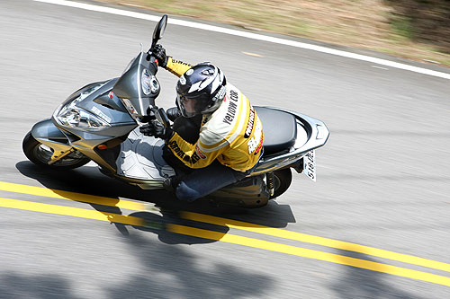 隨著魄力十足的聲浪,我們由市區一路前往山區路段。拉轉的靈敏度、排氣的效率,是4V車種的改裝守則,亦是這部Racing的改裝方針。有人說,4V(4氣門)、高轉、直通管的設定是為中尾速而生,在山道上會比較吃虧。隨著山道在眼前出現,心中的疑惑即將獲得驗證。除了LV與Malossi兩大動力部門加持之外,還有高檔的Bitubo前叉彈簧組、後避震器組等著見彎劈彎。