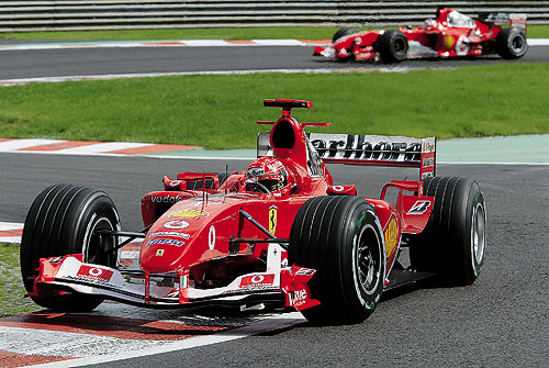 F2004是Michael Schumacher的最後一款錦標冠軍賽車─就許多層面而言,它也是最佳的一款賽車。之前的2003年乃是有如史詩般激烈的賽季,該年Michelin輪胎性能較佳,且Juan-Pablo Montoya以及Kimi Raikkonen也在冠軍之爭中緊逼Schumi,沒錯,他在該季的匈牙利大獎賽中甚至蒙受了被套圈的窘況。因此Ferrari回到設計室的繪圖板上加緊研發,甚至也打破了該隊以舊年份賽車參加新賽季序盤比賽的慣例、而在開幕賽的澳洲站即以F2004應戰,該場比賽通過終點時,它領先了對手超過半分鐘;13場比賽之後,Schumi已經累積了120分,其中僅有在摩納哥站未能完賽。