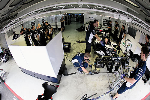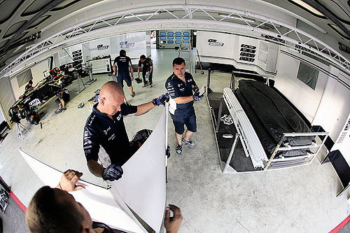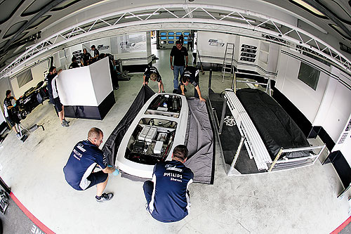 儘管這個週末的成績開高走低,但是Williams的人員還是要工作到晚上,一貴的車子在7:45整備完成,然後再留30分鐘拆除車庫裡剩餘的器材。8:30前,技師們關掉了車庫燈、留下裝箱好的器材、回到他們住宿的飯店。