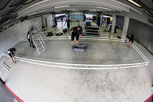 然後車隊收到了來自FIA的壞消息,每輛賽車都無法於6:15之前離開管制區,這比平常晚了45分鐘,以致於延遲了車隊的打包工作,因為車庫前方還不能撤收,他們要等待車子從管制區回來之後,由技師進行檢查、並裝上卡車。