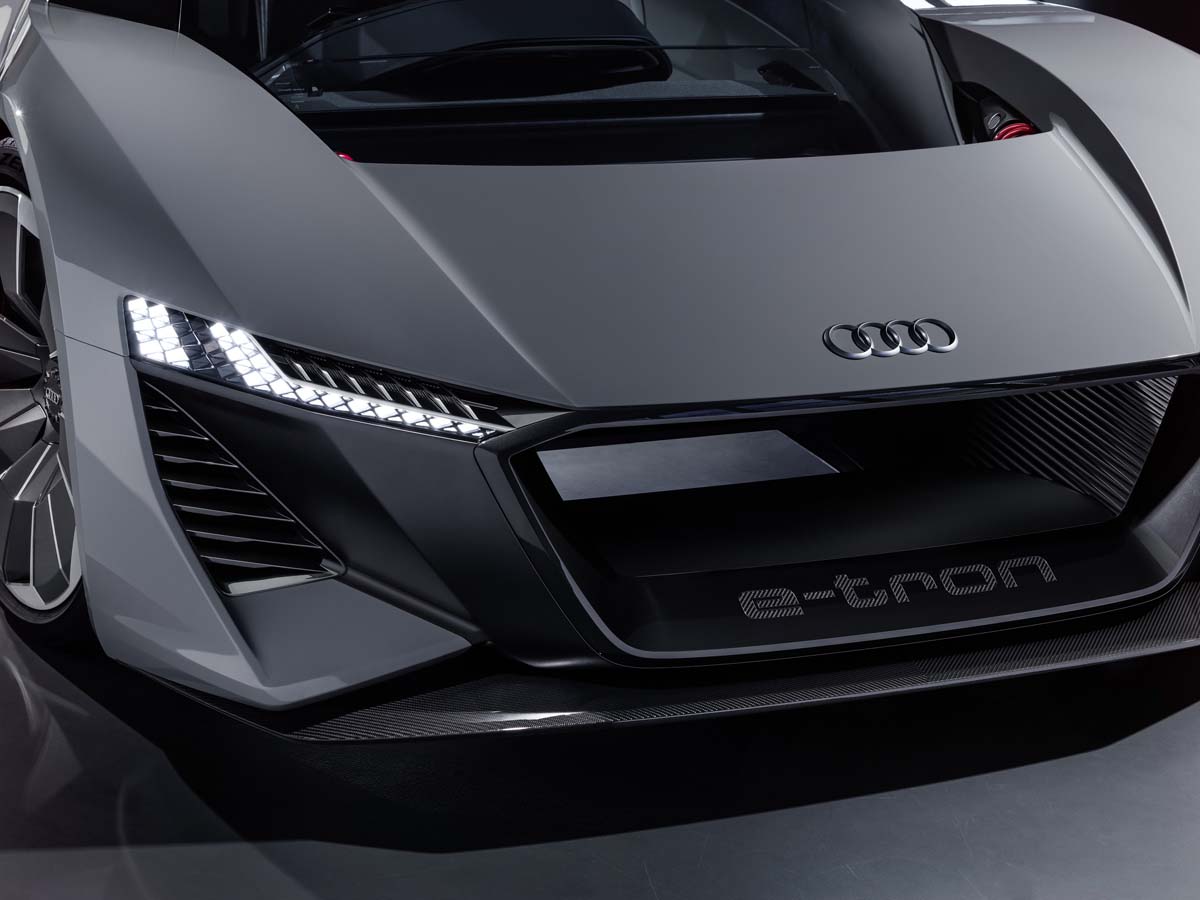 Audi今年首度於加州蒙特雷舉辦之圓石灘車展發表全新的純電概念超跑;Audi PB 18 e-tron象徵著開啟未來高性能超跑的嶄新篇章,低扁的外型不僅深受賽道與風洞測試的影響,也意味著其注定突破極限的使命;其設計概念與充滿跑格的車身線條則出自於Audi設於加州馬里布海岸的設計工作室,該工作室同時肩負著Audi與時並進的新世代設計哲學。Audi PB18 e-tron承襲數年來在利曼賽事創下的輝煌紀錄,而縮寫命名則取自於首演地點圓石灘(Pebble Beach),同時也呼應與利曼衛冕王者Audi R18 e-tron共享的賽道DNA;向全球車壇預演未來純電移動的全新藍圖!